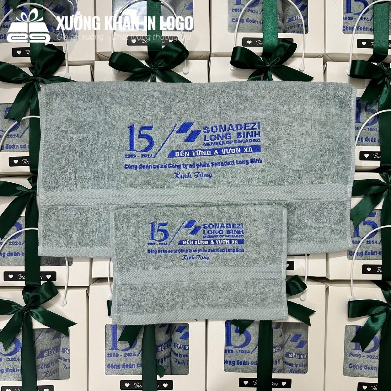 Logo và thông điệp doanh nghiệp được thêu sắc nét trên bề mặt khăn có độ dày vừa phải