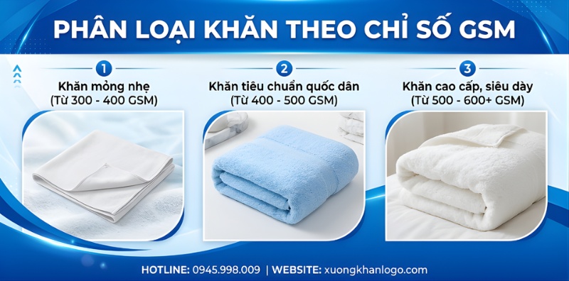 Dựa trên định lượng GSM, chúng tôi phân loại khăn thành ba nhóm chính, mỗi nhóm phù hợp với những mục đích sử dụng và phân khúc khách hàng khác nhau. Việc nắm rõ sự khác biệt này sẽ giúp bạn đưa ra lựa chọn tối ưu nhất.