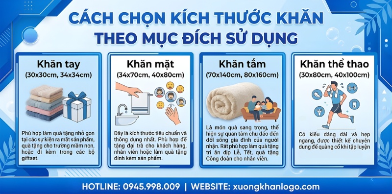 Kích thước khăn không chỉ ảnh hưởng đến ngân sách mà còn quyết định tính hữu dụng của món quà. Việc chọn đúng kích thước theo mục đích sử dụng sẽ giúp món quà của bạn trở nên thiết thực và được người nhận trân trọng hơn.
