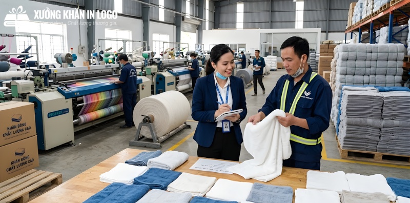 Để nhận biết một xưởng sản xuất khăn uy tín thật sự, bạn hãy yêu cầu họ gọi video call để xem máy dệt, máy thêu đang hoạt động, hoặc đến thăm xưởng trực tiếp. Một xưởng uy tín sẽ không bao giờ từ chối yêu cầu này.