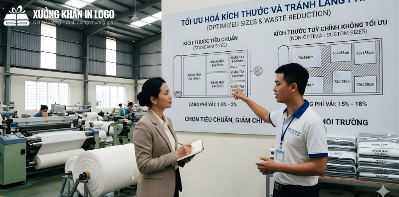 Một lỗi rất phổ biến chúng tôi thường gặp là khách hàng tự “nghĩ” ra một kích thước lạ, ví dụ như 36x75cm thay vì kích thước tiêu chuẩn 35x70cm. Điều này dẫn đến việc xưởng phải dệt một khổ vải riêng và cắt bỏ rất nhiều vải thừa.