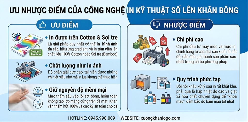 Như vậy, việc nắm vững ưu nhược điểm của từng công nghệ in là chìa khóa để bạn tạo ra những chiếc khăn in logo vừa đẹp, bền, vừa phù hợp với ngân sách. Mỗi lựa chọn đều mở ra một khả năng riêng để truyền tải thông điệp thương hiệu một cách hiệu quả.