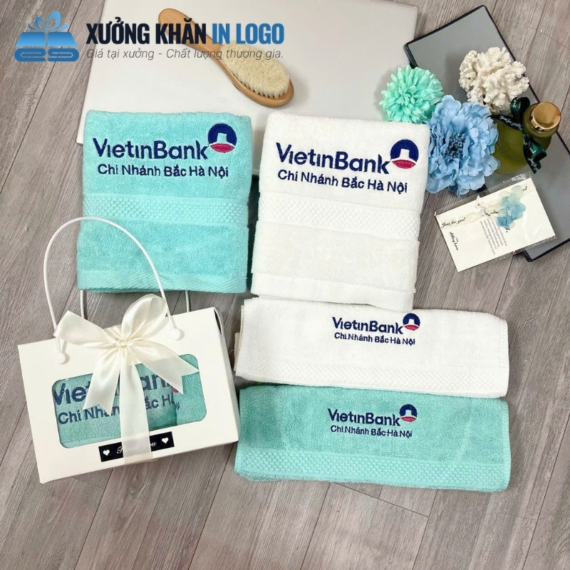 - Chỉ cần điểm xuyết (Logo nhỏ 8-12cm ở góc khăn): THÊU là lựa chọn gọn gàng, tinh tế và không làm cộm khăn.