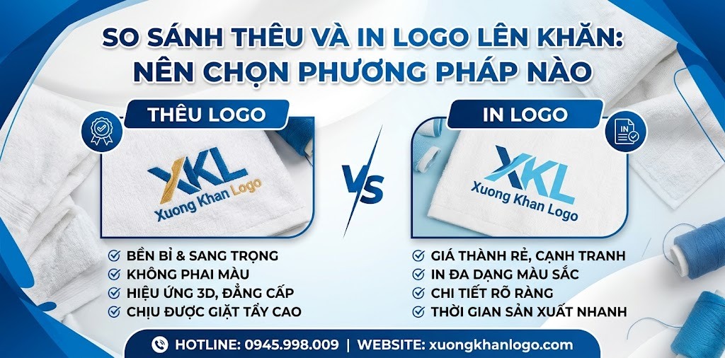 Khi đặt hàng khăn số lượng lớn tại xưởng, câu hỏi “Nên thêu hay in logo?” luôn là trăn trở đầu tiên. Đây không chỉ là lựa chọn về hình thức mà còn là quyết định quan trọng ảnh hưởng trực tiếp đến hình ảnh thương hiệu và ngân sách. Với hơn 10 năm kinh nghiệm trong lĩnh vực sản xuất và cung cấp khăn cho các thương hiệu lớn, Xưởng Khăn Logo sẽ phân tích khách quan từng phương pháp để bạn có lựa chọn đúng đắn nhất.